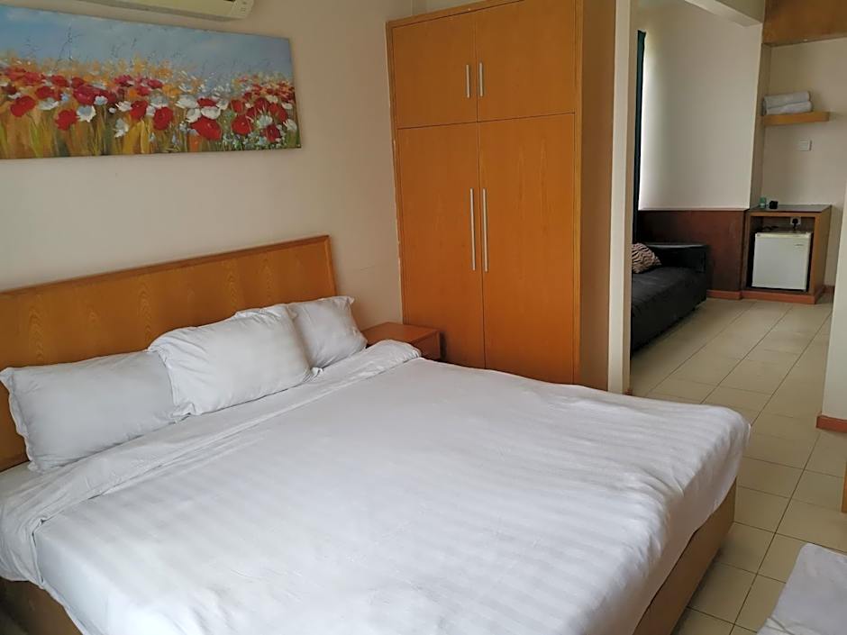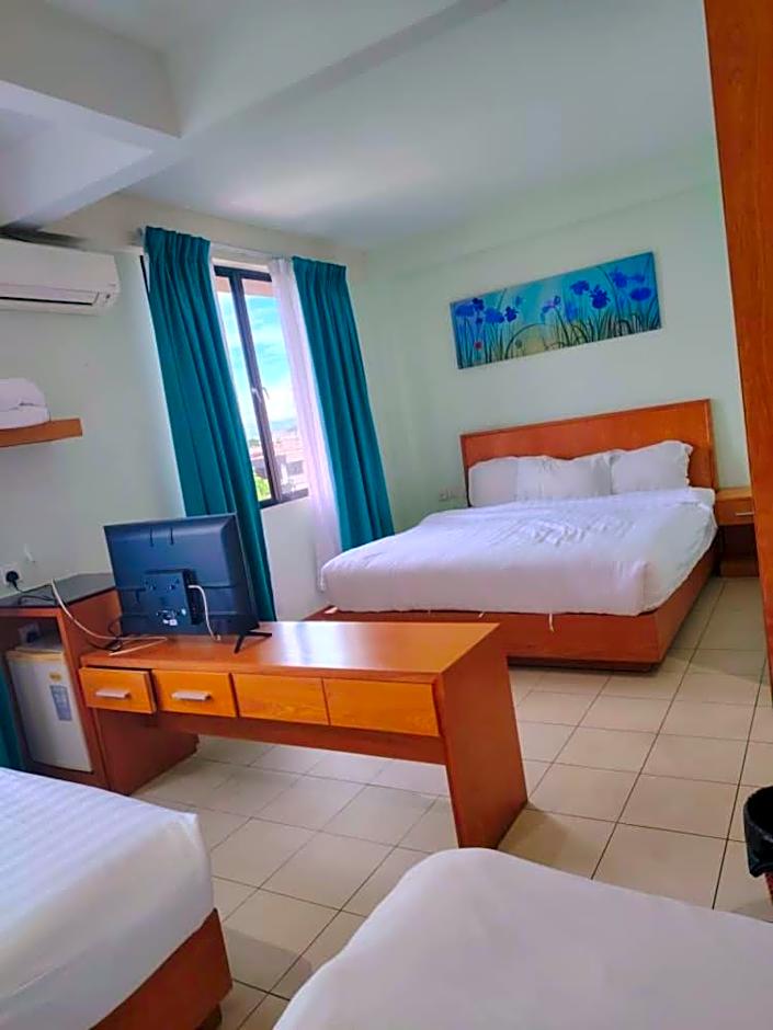 The quadruple room features a private bathroom equipped with a bath and a shower. The air-conditioned quadruple room provides a flat-screen TV with satellite channels, a tea and coffee maker, a wardrobe, a tiled floor as well as garden views. The unit offers 3 beds.